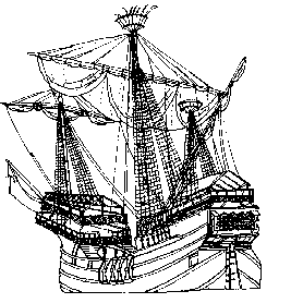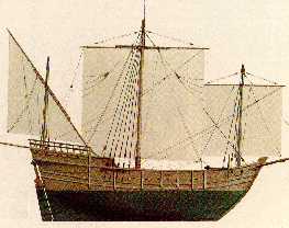 La caravelle. Propulsion à voile. Origine andalouse (?). Une sorte de petite carraque sans châteaux. C'était le navire d'exploration par excellence. Son faible tonnage (50t) et donc son faible tirant d'eau, allié à l'utilisation de voiles latines, permettaient au navire de se faufiler n'importe où. La caravelle remontait bien le vent et tournait presque sur place. Toutes ces qualités faisaient de ce type de navire l'outil idéal pour explorer des mers à la géographie, aux courants et aux vents inconnus. Toutefois, certaines de ces caravelles furent équipées de voiles carrées pour mieux prendre les vents alizés venant de l'arrière.